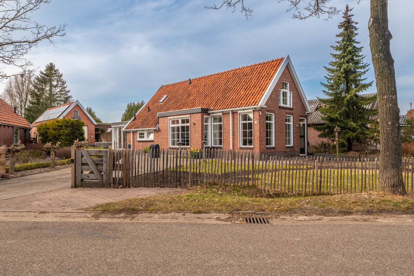 Bovendien beschik je over een prachtig riant perceel. Twee auto’s? Geen probleem. Op de oprit, grenzend aan de royale voortuin, is ruimte genoeg. Loop je verder, dan tref je een royaal terras waar je lekker kunt zitten onder de overkapping. Die overkapping (ook geschikt als carport) ligt naast de garage en biedt schaduw. Van zon geniet je in de diepe achtertuin, voorzien van fruitbomen (pruim, appel, kers), prachtige naaldbomen en meer. De vele ruimte en grasvelden kun je benutten voor je favoriete activiteiten. Spelen, moestuinieren of dieren houden, het kan allemaal. De achtertuin is tevens voorzien van omheining en een vrijstaand houten tuinhuis.