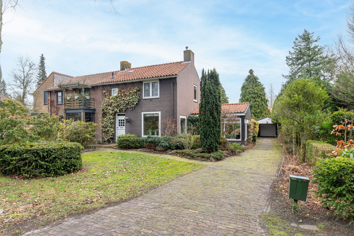 - Vrijstaande garage met elektrische overheaddeur en carport