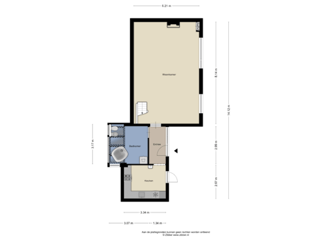 Bij binnenkomst tref je rechts een ruime woonkamer waar voldoende natuurlijk licht binnenkomt. Daarnaast kun je via de hal links de ruime en nette keuken bereiken. Ingericht met een koelkast, oven, spoelbak en 4-pits gasfornuis met afzuigkap. Tevens is hier de opstelplaats van de cv-ketel.