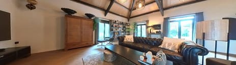 Aan het einde van een rustige landweg, verscholen tussen volwassen groen en met volledige privacy rondom, ligt deze gelijkvloerse villa met verwarmd zwembad, vrijstaande bijgebouwen, een riante loods en een zelfstandig gastenverblijf. Een zeldzaam compleet woonensemble op 9.030m² eigen grond, waar stijl, functionaliteit en vrijheid samenkomen.