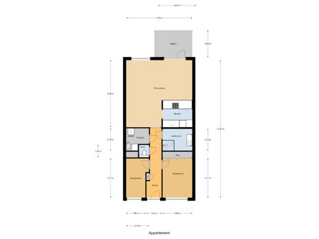 Via een stalen schuifdeur komt u in de lichte woonkamer over de gehele breedte van de woning met aan de achterzijde aangrenzend het balkon. Via een toog komt u in recent geplaatste keuken met twee rechte opstellingen voorzien van een inductiekookplaat met afzuiging, oven, koelkast, vaatwasser en meer dan voldoende bergruimte in de lades. Vanuit de woonkamer stap u zo het balkon op, gelegen op het westen, hier kun je dus heerlijk genieten van de middag- en avondzon.