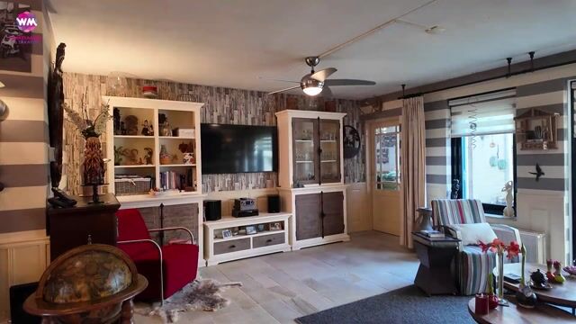 • De schuifpui in de woonkamer heeft een elektrisch bedienbaar rolluik en zonnescherm;