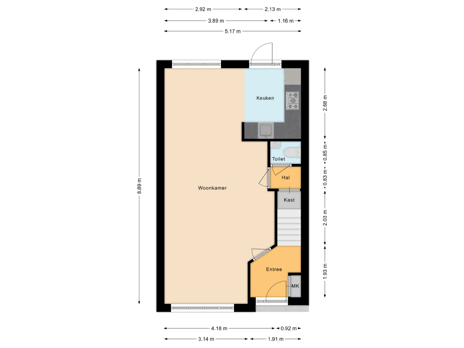 - 87 m² (17.00 metre deep and 5.10 metre wide)