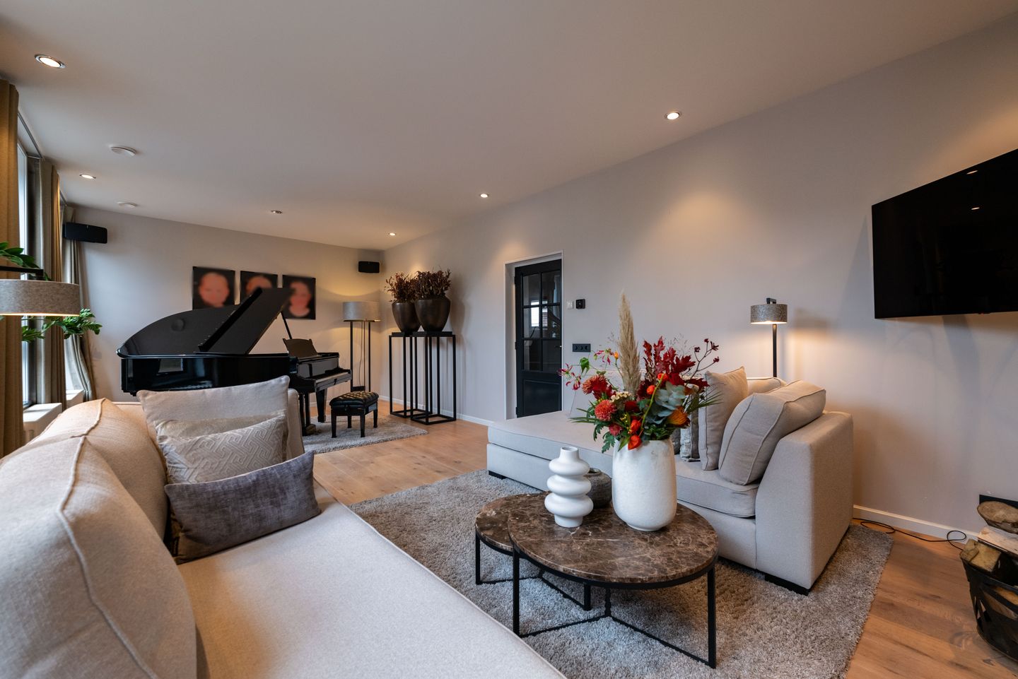 De woonkeuken vormt het kloppend hart van de woning, met genoeg ruimte voor lange diners en gezellige momenten. Het kookeiland en de luxe apparatuur – waaronder Quooker voor zowel kokend als bruisend water, klimaatkast, dubbele vaatwasser en meer – maken koken hier een waar plezier.