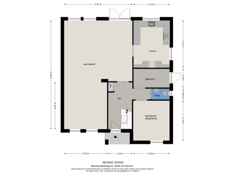 We lopen terug naar de hal en lopen door naar een bijkeuken die voorzien is van fraaie inbouwkasten met diverse apparatuur zoals een vriezer en wasmachine. Tevens is er ruimte voor een droger. Deze praktische bijkeuken bied je veel extra bergruimte en jouw wasmachine en wasdroger staan mooi uit het zicht. Ook beschikt deze ruimte over een zij entree naar de oprit. Vanuit de hal bereiken we tevens de huidige werk- en logeerkamer maar je kunt jouw fantasie hier werkelijk de vrije loop laten voor het invullen van deze ruimte. Deze leent zich namelijk perfect voor gebruik als: hobbykamer, speelkamer voor eventuele kinderen of als een fijne thuiswerkplek. De gehele begane grond is voorzien van een nieuwe houten vloer die recentelijk is gelegd.