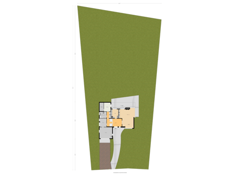 De woning is prachtig gelegen op het perceel, met aan de voorzijde een oprit voor meerdere auto's en toegang tot de voordeur. Aan de achterzijde ligt het terras achter de woning. De achtertuin is zuid georiënteerd en glooit een beetje. De tuin is aangelegd met een groot gazon en diverse bomen, struiken en diverse beplanting.