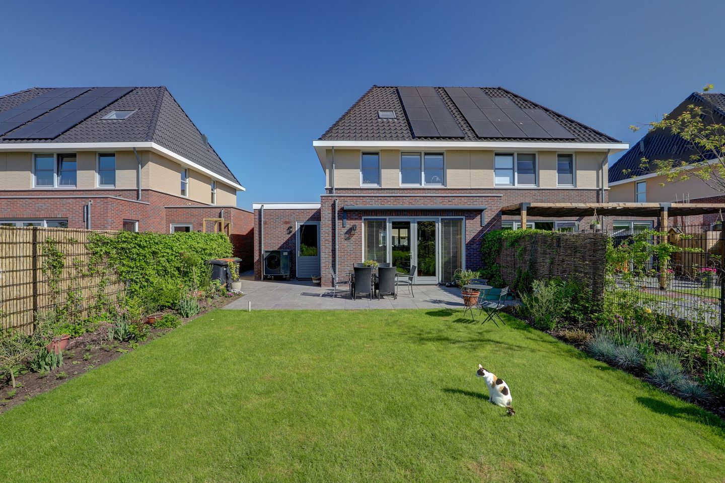 Automatische zonwering tuinzijde.
