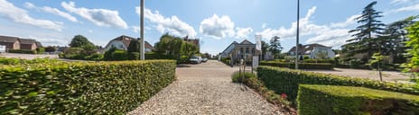At the front you have access to the driveway to the garage via an electrically operated gate. There is enough space to park here as well.