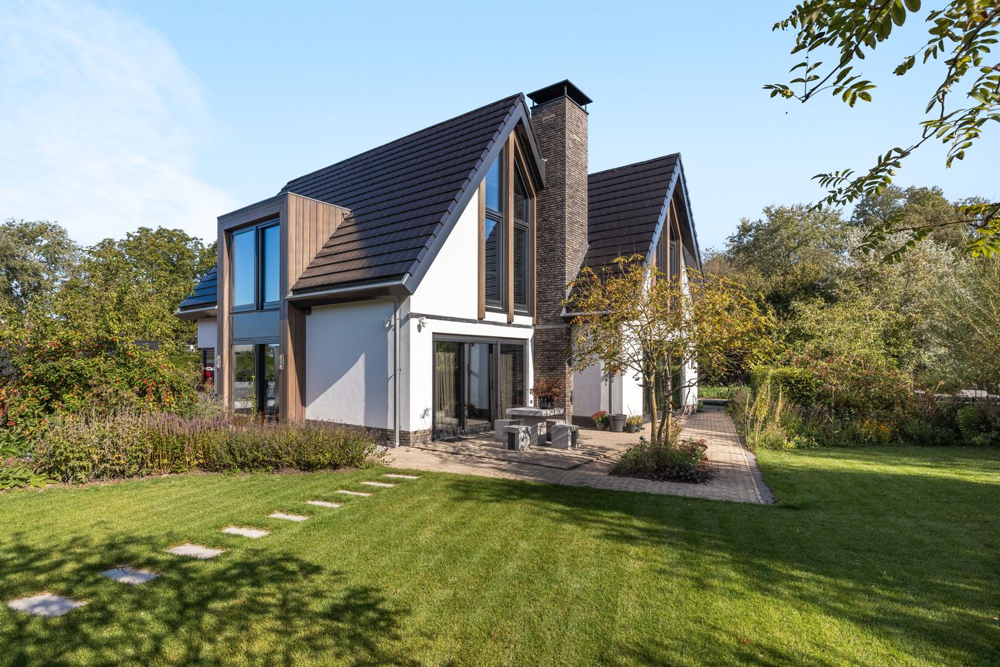 Te midden van deze groene oase staat een stijlvolle vrijstaande villa, vergezeld door een volwaardig tuinhuis. Beide zijn tot in de puntjes verzorgd en hoogwaardig afgewerkt. De onder architectuur aangelegde tuin biedt een natuurlijke leefomgeving waar kleurrijke bloemen, vlinders en vogels samenkomen.
