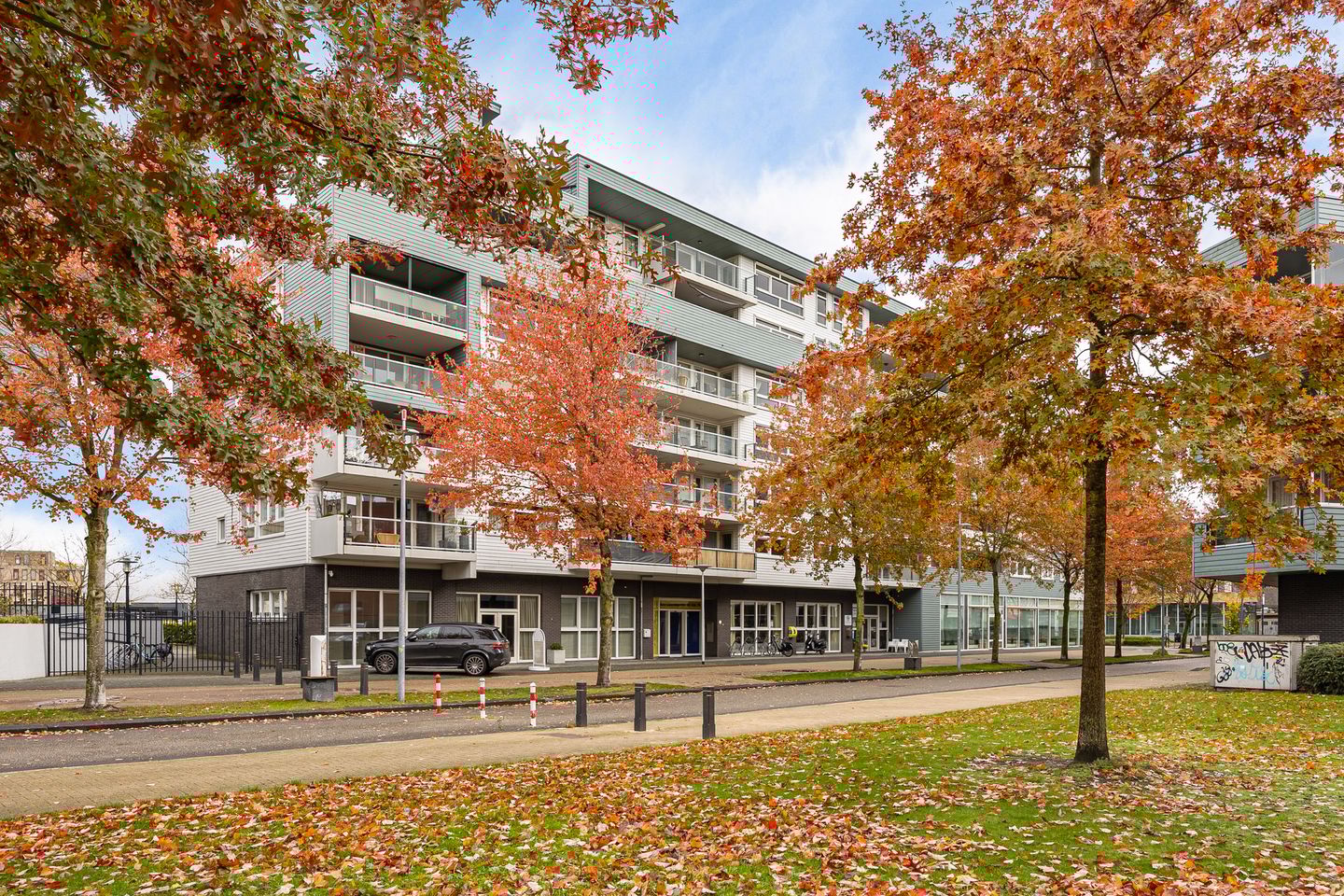 Het appartement ligt op de zesde verdieping en beschikt over een ruim balkon van circa 11 m², gericht op het zuidwesten. Hier kunt u volop genieten van de namiddag- en avondzon, terwijl u uitkijkt op het omliggende groen. De kelder biedt een ruime, inpandige berging van ongeveer 7 m² en een eigen parkeerplaats op het afgesloten terrein achter het gebouw.