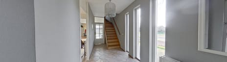 Entree/hal met toilet, meterkast, tussenhal richting garage, keuken en de woonkamer.