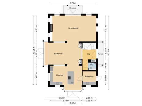 Dubbele schuifdeuren met geslepen glas geven toegang tot de royale living area. In het midden van dit royale leef- en woongedeelte is een ruime eethoek gesitueerd met hoge ramen en openslaande deuren naar buiten, die zorgen voor een prachtige lichtinval. Aansluitend bevindt zich aan de voorzijde de luxe keuken met uitzicht op de voortuin. Deze keuken is zeer compleet uitgerust met een kookeiland, inductiekookplaat met vier zones, twee gaspitten, een wok- gaspit, een teppanyaki bakplaat, Quooker, afzuigkap, vaatwasser, koel-vrieskast voorzien van ijsblokjesfunctie en een vriesgedeelte, een combi oven-magnetron en een stoomoven. De keuken is uitgevoerd in hoogglans met een composiet aanrechtblad en biedt daarnaast volop kastruimte. Het zitgedeelte heeft een schouw met gashaard en via de openslaande deuren is direct toegang tot het terras. Er is ruimte voor een extra eethoek of een werkplek, waardoor deze ruimte eenvoudig kan worden aangepast aan uw woonwensen. Het geheel straalt comfort, luxe en flexibiliteit uit en is tot in detail verzorgd. De airconditioning geeft hier extra comfort. Via de keuken bereikt u de bijkeuken, die eveneens is voorzien van een buitendeur en extra bergruimte. Deze ruimte heeft een keukenblok met een warm/koud water aansluiting.