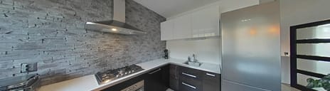 De halfopen eetkeuken geeft een ruimtelijk gevoel. De stijlvolle keuken is een waar paradijs voor kookliefhebbers. Met een 5-pits gasfornuis inclusief wokbrander bereid je de lekkerste gerechten, terwijl de combimagnetron en vaatwasser voor het nodige gemak zorgen.