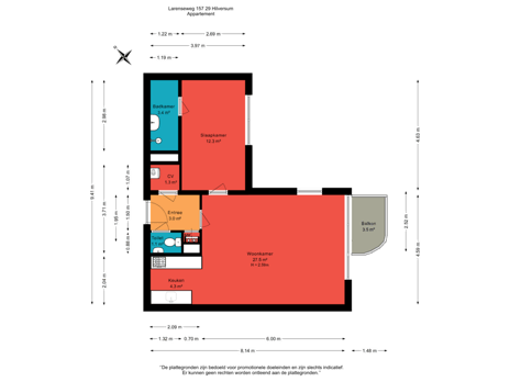 Deze informatie is met zorg samengesteld, maar er wordt geen aansprakelijkheid aanvaard voor eventuele onvolledigheden, onjuistheden of andere tekortkomingen, noch voor de gevolgen daarvan. Wij benadrukken dat de koper een wettelijke onderzoeksplicht heeft. Alle opgegeven maten zijn conform NEN 2580 gemeten en zijn indicatief.