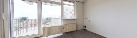 In de fijne zonnige woonkamer tref je een kunststof schuifpui met dubbele beglazing die toegang geeft tot het balkon. Het balkon is op het zuidwesten.