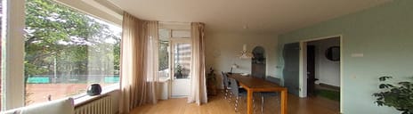 De lichte en ruime woonkamer vormt het centrale leefgedeelte van de woning. Door de grote ramen heb je ruim uitzicht o.a. op het groen, en over de tennisbanen. Vanuit de woonkamer heb je toegang tot het tweede, royale balkon, gelegen op het zuidoosten, ideaal om van de zon te genieten. Aangrenzend vind je een extra kamer, die uitstekend kan dienen als kantoor, hobbyruimte of logeerkamer. Deze kamer heeft ook een deur naar het royale balkon.