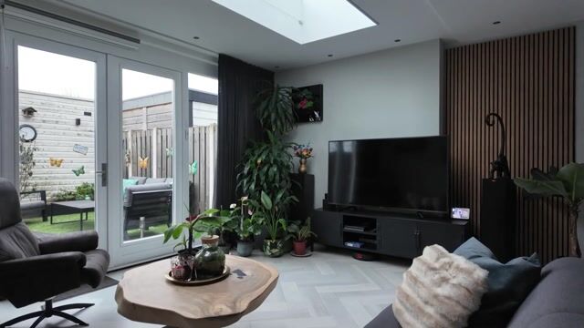 Via de rustige straatzijde betreed je de woning. In de hal tref je een modern, geheel betegeld zwevend toilet, de meterkast en de trapopgang naar de eerste verdieping. Vanuit de hal is er toegang tot de royale woonkamer, een heerlijke leefruimte waar licht en ruimte direct opvallen. De lichtstraat in de uitbouw zorgt voor een fijn natuurlijke lichtinval en een open sfeer. Praktisch is de aanwezige trapkast, ideaal voor extra bergruimte!