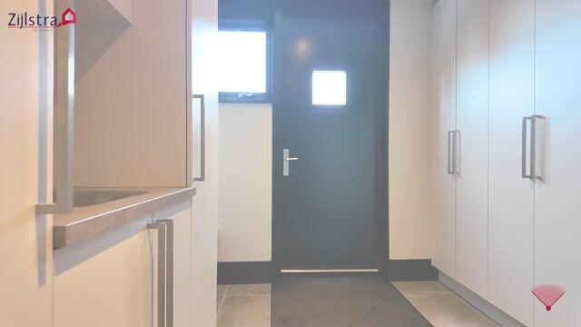 In de hal bevindt zich een separate toiletruimte met wandcloset en fonteintje. De bijkeuken is praktisch ingericht met vaste kasten, een wasbak en aansluitingen voor wasmachine, droger en de mechanische ventilatie.