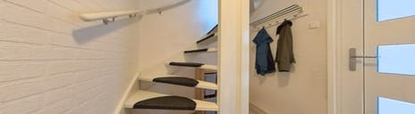 Bij binnenkomst betreedt u de hal, waar zich direct aan de linkerzijde de meterkast met zeven groepen bevindt.