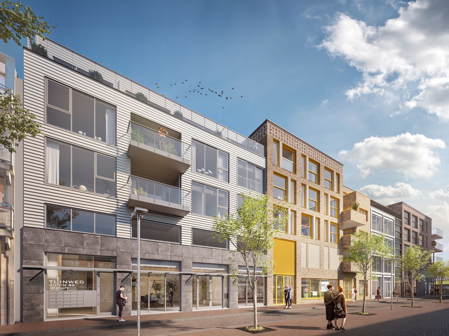 The Concourse is a first-class apartment building situated in the middle of Hoofddorp's shopping center, offering a variety of apartments and commercial spaces on the ground floor. The building features 69 beautifully designed apartments with space, privacy, and comfort, presenting itself as several small buildings with eight different facades. Each facade has its own specific characteristics in color, height, window shape, and details. This creates a varied streetscape that fits nicely into the charming shopping streets of Hoofddorp's center.