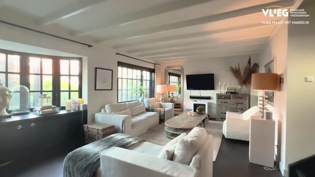 The house has a unique, almost English cottage-like, layout with a sunny living room with a bay window and beamed ceiling as well as a spacious, separate kitchen/dining area with a high vaulted ceiling (almost 5 meters high!) with exposed beams that create a rustic atmosphere. On the first floor, you will find 2 large bedrooms and the new bathroom, and one floor higher, we find the handy storage attic, which is accessible by a fixed staircase and therefore offers potential for a third bedroom!