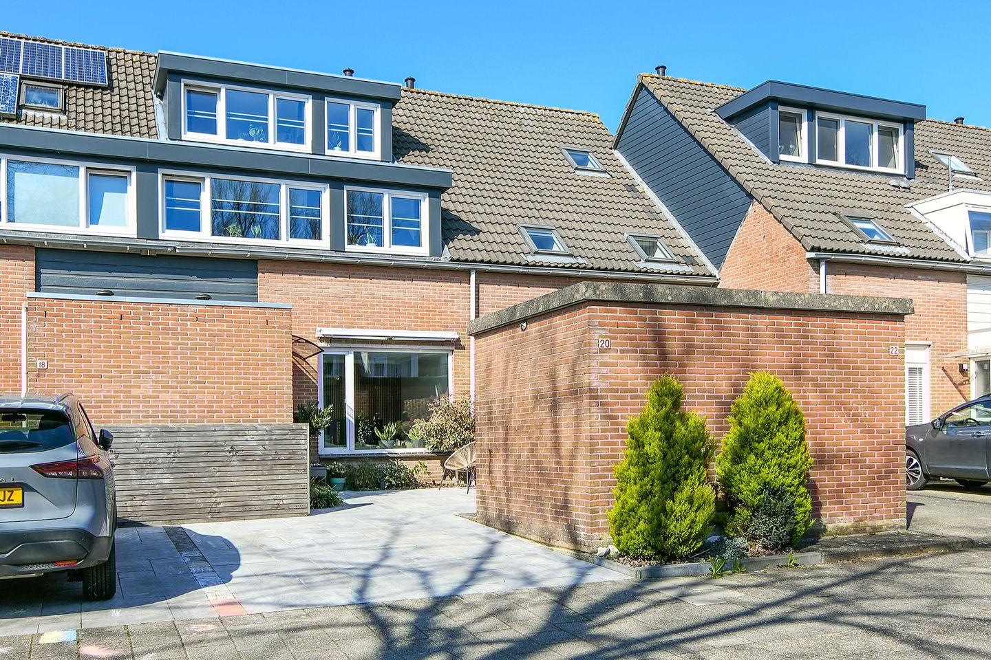 Sunny backyard over 7 meters deep facing the sunny west, with afternoon and evening sun. Plenty of privacy. Electric awning. Garden with stone shed and a private parking space at the front of the house. Additionally, there is ample public parking available on the street.