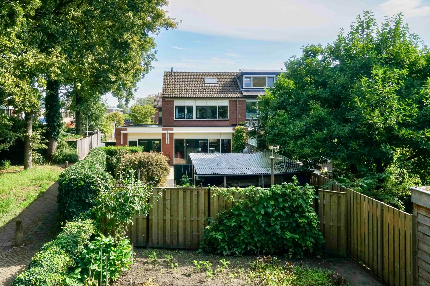 Tuin en aangebouwde stenen berging: de verzorgde achtertuin is gelegen op het zonnige westen en biedt een fijne mix van groen en gemak. Geniet van het terras, de sfeervolle borders met groene beplanting en het charmante kippenhok – inclusief gezellige kippen! Achterin de tuin staat een vrijstaande houten berging, ideaal voor het opbergen van tuingereedschap. De berging is bereikbaar middels een handige achterom.