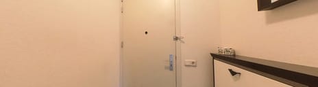 Hal/entree (ca. 14 m²) met toegang tot de diverse vertrekken. Daarnaast tref je hier een licht betegeld toilet met hangcloset en fonteintje, meterkast (8 groepen, glasvezel en slimmer meters), een epoxy siergrindvloer, een vaste kast met de unit van stadsverwarming (Vattenfall) en een videofoon, zodat je kunt zien en horen wie er beneden aanbelt.