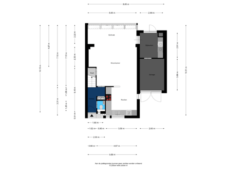 • Inpandige bijkeuken met witgoedaansluitingen in een op maat gemaakte kastenwand.