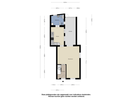 In de huidige situatie is de badkamer op de begane grond. Deze ruimte, met witte wandtegels en grijze vloertegels, is ingedeeld met een douche, toilet, wastafel en de wasmachineaansluiting. Ook hangt hier de boiler, die in de badkamer en keuken voor warm water zorgt. Verplaats je de badkamer naar boven, dan is de badkamer heel geschikt om te gebruiken als bijkeuken/wasruimte.