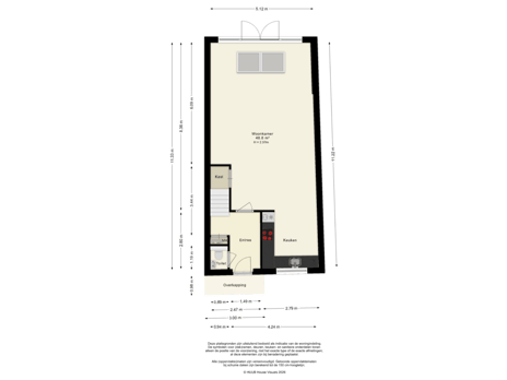 - 57 m² (11.00 metre deep and 5.15 metre wide)