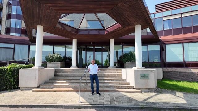 De geheel afgescheiden hotelvleugel van het gebouw is thans in gebruik voor tijdelijke opvang van Oekraïners.