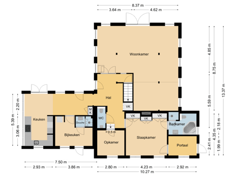 Alles is strak afgewerkt: recent gestuukt en geschilderd, met oog voor detail. De authentieke plafonds zijn opgebouwd uit de originele houten balken van de oude boerderij, wat karakter en charme toevoegt aan het geheel. Via de hal bereikt u een ingebouwde garderobe, met aan de andere zijde een apart gastentoilet met eigen wastafel. Aan de voorzijde van het huis treft u een charmante opkamer aan – een onderdeel van de originele indeling. Deze ruimte leent zich uitstekend als extra slaapkamer, kantoor of hobbykamer. Verder vindt u op de begane grond de royale master bedroom met een eigen badkamer. Deze kamer is ruim en biedt uitzicht op de voortuin en het omliggende groen. Ingebouwde kasten zorgen voor voldoende opbergruimte en er is zelfs een aparte strijkruimte met direct toegang tot de tuin en de wellnessruimte. De aangrenzende badkamer is compleet uitgerust met een ligbad, ruime inloopdouche, wastafel en een apart toilet.
