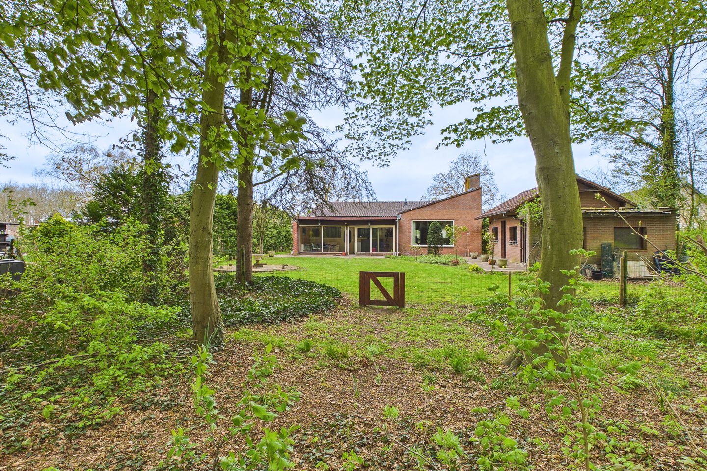 De tuin rondom de woning is een absolute meerwaarde en ademt rust, privacy en natuur. Dankzij de royale opzet is er altijd een fijne plek in de zon of schaduw te vinden. Het terras nodigt uit om lange zomeravonden buiten door te brengen, terwijl het gazon en de diverse bloem- en plantenborders zorgen voor een kleurrijk en verzorgd geheel. Achter in de tuin geniet je van een prachtig zicht op de bosrijke omgeving, waardoor je hier iedere dag het gevoel hebt midden in de natuur te wonen.