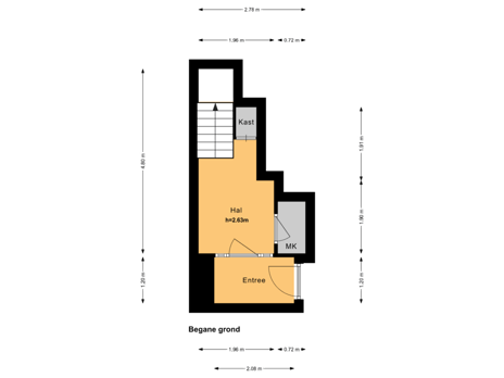 Via de voordeur bereik je de zeer ruime hal, die direct een welkom gevoel geeft. Hier bevindt zich de meterkast en de trapopgang naar de 1e verdieping. De entree biedt meer dan genoeg ruimte voor jassen, schoenen, een garderobekast of zelfs 2 fietsen — iets wat je maar zelden ziet bij een bovenwoning.