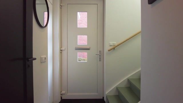 Je komt binnen in de hal met het toilet en de trapopgang, waarna de woning zich direct prettig ontvouwt.