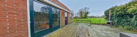 Achter de woning staat een goede en ruime stenen garage/berging met aan de voorzijde een lange, geheel bestrate oprit. De achtertuin ligt op het zonnige zuidwesten en grenst aan een weiland. Dit geeft een lekker vrij gevoel en uitzicht.