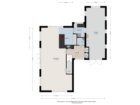 Via de hal met toilet, trapopgang, meterkast en bergkast bereik je woonkamer met massieve houten vloer. De woonkamer is voorzien van airco die zowel verwarmd als koelt, openslaande deuren aan de zijkant, een trapkast en veel natuurlijk lichtinval. Via de schuifpui loop je direct de tuin in. Aansluitend bevindt zich de moderne U-vormige keuken, voorzien van diverse inbouwapparatuur zoals een inductiekookplaat met afzuigkap, combi steamer-oven, vaatwasser en een inbouw koffiemachine. De keuken is voorzien van plavuizen en heeft een fijne verbinding met de bijkeuken, waar ruimte is voor de wasmachine en droger. Vanuit de bijkeuken kom je in de garage, waar de cv-ketel, boiler, waterontharder en omvormer voor de 16 zonnepanelen zich bevinden.