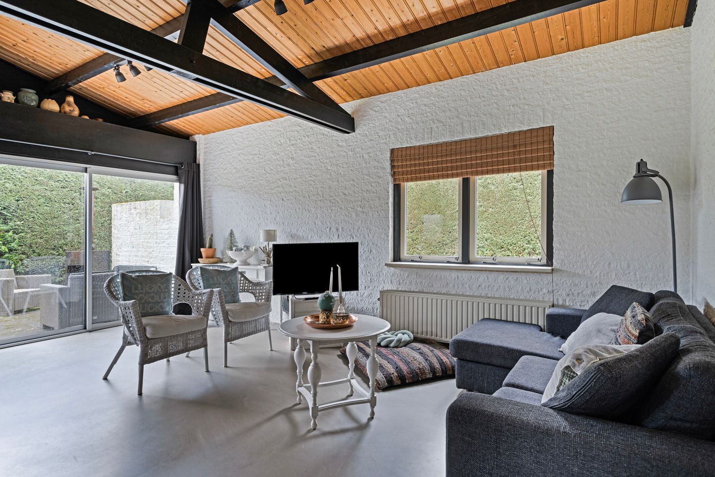 De sfeervolle woonkamer is ruim opgezet en geniet van veel natuurlijk licht. Er is voldoende ruimte voor zowel een eet- als zithoek, wat zorgt voor een gezellige leefomgeving. De moderne keuken, geplaatst in 2006, is voorzien van diverse inbouwapparatuur, waaronder een vaatwasser, een 4-pits gaskookplaat en een afzuigkap. Via de schuifpui in de woonkamer heeft u direct toegang tot het terras in de tuin.