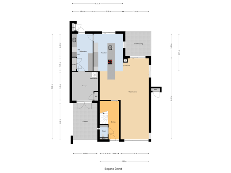Aangrenzend aan de keuken bevindt zich de bijkeuken, met volop kastruimte en aansluitingen voor witgoed. Ook vanuit hier is er toegang tot zowel de tuin als de garage, die tevens dienstdoet als technische ruimte met de warmtepomp en meterkast.