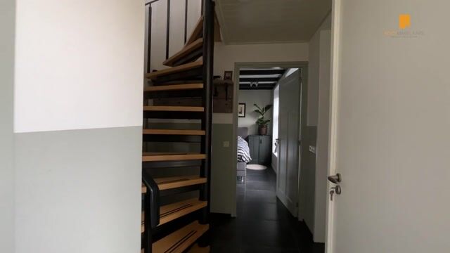 De begane grond biedt een ruime entree, een lichte woonkamer met authentieke balken en een gezellige gashaard, een luxe slaapkamer met en-suite badkamer en een moderne keuken die uitkijkt op de zonnige tuin. Op de eerste verdieping vind je nog een royale kamer die nu als kantoor wordt gebruikt, een tweede slaapkamer met eigen badkamer en slimme voorzieningen voor wasapparatuur. De zolderverdieping biedt volop extra bergruimte.