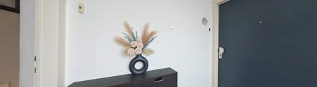 Via de gezamenlijke voordeur bereikt u de trapopgang naar de eigen woonetage. De entreehal is compact