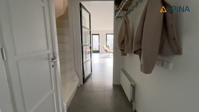 Bij binnenkomst wordt u verwelkomd in een nette hal met toilet, meterkast en trapopgang. Vanuit hier loopt u door naar de ruime woonkamer, die dankzij de grote raampartijen en schuifpui heerlijk licht is. De moderne afwerking met grote grijze plavuizen en vloerverwarming, strakke wanden en een rustige kleurstelling geeft de ruimte een eigentijdse uitstraling. Er is volop plaats voor een comfortabele zithoek en een royale eettafel met uitzicht op de tuin.