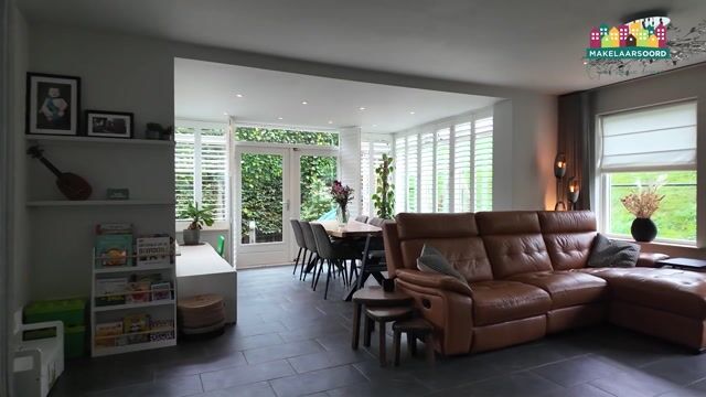 Via de voordeur aan de voorzijde stap je binnen in een ruime en lichte hal met vide, waar direct het gevoel van ruimte en openheid opvalt. Vanuit de hal is er toegang tot het toilet, de meterkast en de woonkamer. Het zitgedeelte bevindt zich aan de rechterzijde en dankzij de vele ramen en de sfeervolle erker is het hier heerlijk licht en aangenaam vertoeven. Aan de andere zijde van de woning ligt de royale keuken die ruim van opzet is en beschikt over alle benodigde inbouwapparatuur. Via de openslaande deuren is er directe toegang tot de achtertuin waardoor binnen en buiten op een natuurlijke manier in elkaar overlopen.