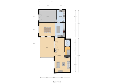 De entree biedt toegang tot de ruime L-vormige woonkamer, een sfeervolle leefruimte voorzien van een gashaard en airconditioning. Dankzij de grote raampartijen is de ruimte heerlijk licht, terwijl de indeling volop mogelijkheden biedt voor zowel een royale zithoek als een grote eettafel.