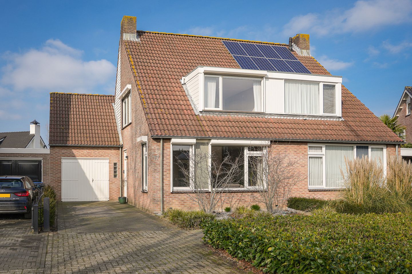 Via de handige oprit loop je zo naar de voordeur, waar je binnenkomt in een nette en verzorgde hal. De lichte, warme kleuren en de stijlvolle nieuwe trapbekleding geven direct een uitnodigend en gezellig gevoel.