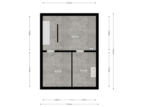 Deze ruimten zijn respectievelijk groot ca. 4,0 x 6,10 m., 4,0 x 3,30 m. en 4,0 x 2,70 m. In het souterrain is eveneens de aansluiting voor de wasmachine en tevens hangt hier de Intergas CV-ketel.