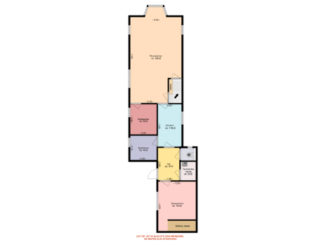 Via de achterdeur komt u binnen in de hal, met toegang tot de keuken, het moderne toilet, de technische ruimte waar zich o.a. de wasmachineaansluiting, CV-ketel en thuisbatterij bevinden, en de ruime slaapkamer (14m2) met walk-in closet.