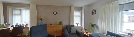 De woonkamer ligt aan de voorzijde en is een licht en ruim vertrek met een nette laminaatvloer, erker en pelletkachel die is aangesloten op de radiatoren. Hierdoor kan de woning grotendeels gasloos worden verwarmd. Aangrenzend bevindt zich een werk- of studeerkamer die ook prima dienst kan doen als vierde slaapkamer. Ook vind je in de kamer de deuren naar de kelder en de trapopgang.