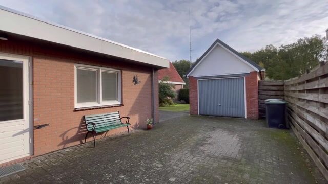 Het ruime perceel is netjes onderhouden en biedt volop mogelijkheden. Aan het einde van de oprit staat een vrijstaande stenen garage, ideaal voor het stallen van een auto of als hobby- en klusschuur. Halverwege de tuin bevindt zich een mooi overdekt terras met uitzicht op het groen, hier kunt u het hele jaar door prettig zitten. Daarnaast is er een houten berging aanwezig alsmede een kas. Het achterste deel van de zonnige tuin bestaat uit een ruime grasmat met genoeg plek voor een extra terras, moestuin, speelruimte voor kinderen of een plek voor huisdieren. Aan de achterzijde grenst het perceel direct aan een bosperceel, waardoor u privacy en een vrij uitzicht heeft.